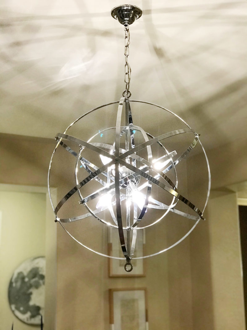 March 29, 2018 at 7:40 AMWhat a coincidence!! I had that exact same ugly brown chandelier over my dining table right up until last week. I hated that darn thing. It was hideous to look at and had a tendency to collect dead bugs in the upturned shades. For three years I loathed that light. I finally convinced the Mister that it had to go and we called an electrician to swap it out for a much prettier, easier on the eyes light fixture. Much happier. Congrats on getting that beautiful orb chandelier back. That’s a good day!