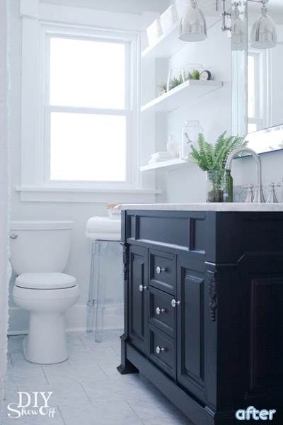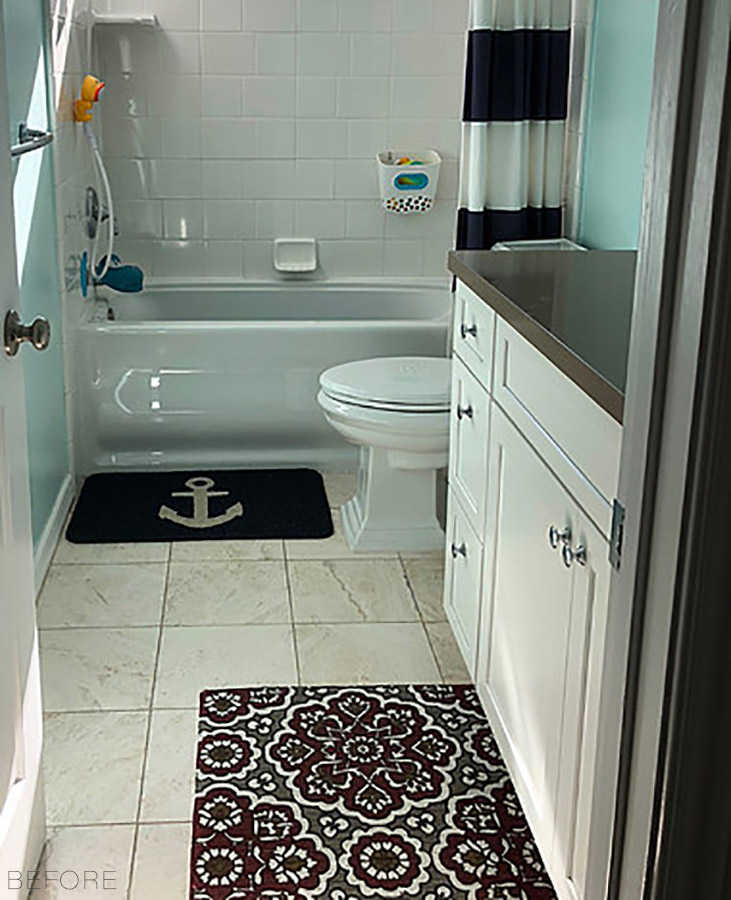 This bathroom floor also had a case of the blahs. Nothing a little paint couldn’t cure.