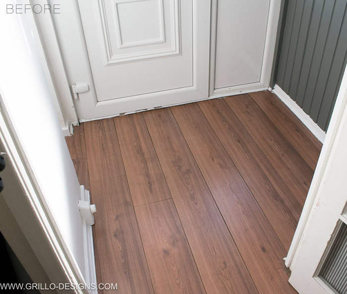 But here are a couple floors that were not the business. First, this little front door space in Medina’s home. It looks ok in the photo, but she says it was super scratched and dark enough that it made the whole area feel gloomy. But she lives in a rental too, and couldn’t do anything permanent. So she used ….