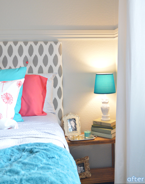– I assembled a crew of friends and family, and we transformed her bedroom and bathroom into a space that mirrored her spunky, vibrant personality.